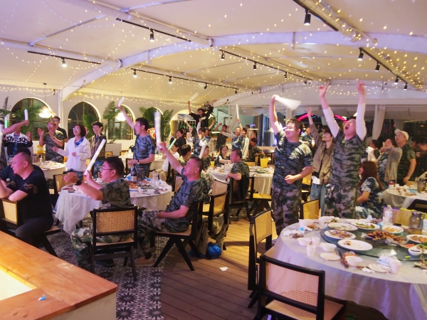 晚餐后的派对将气氛推向高潮!国际友人的加入让舞台更加多彩,全员纵情歌舞,烟花秀点亮崂山夜空,笑声与掌声交织成最难忘的回忆。